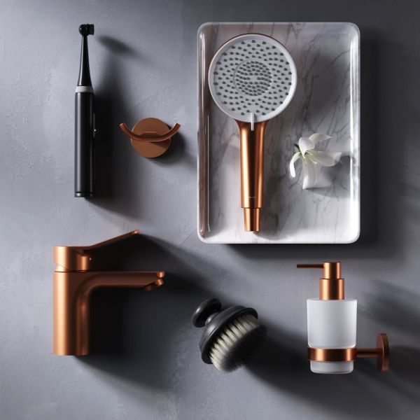 Настоящее произведение ювелирного искусства в вашей ванной комнате: нежный оттенок розового золота получается методом вакуумного напыления смеси 24-каратного золота, серебра и меди, в процессе которого микрочастицы сплава образуют стойкое соединений с латунной основой.