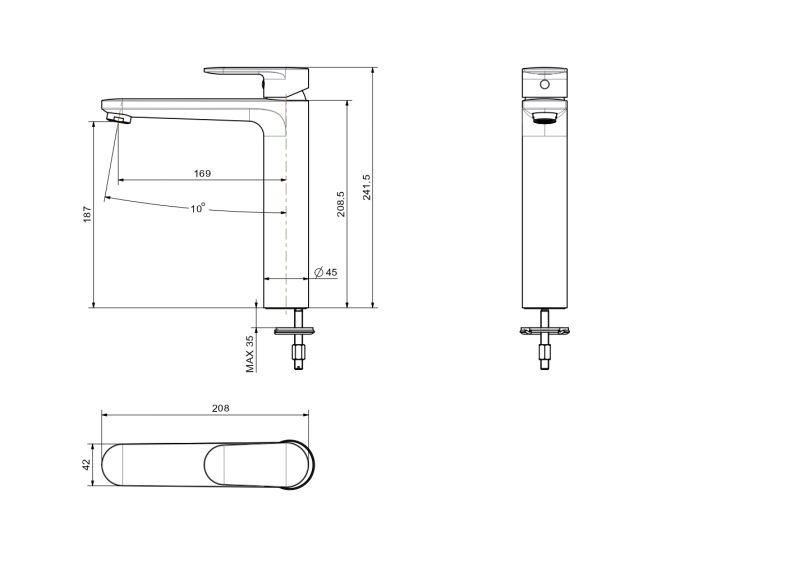 • Оснащен высоким изливом, удобен для мытья крупных предметов