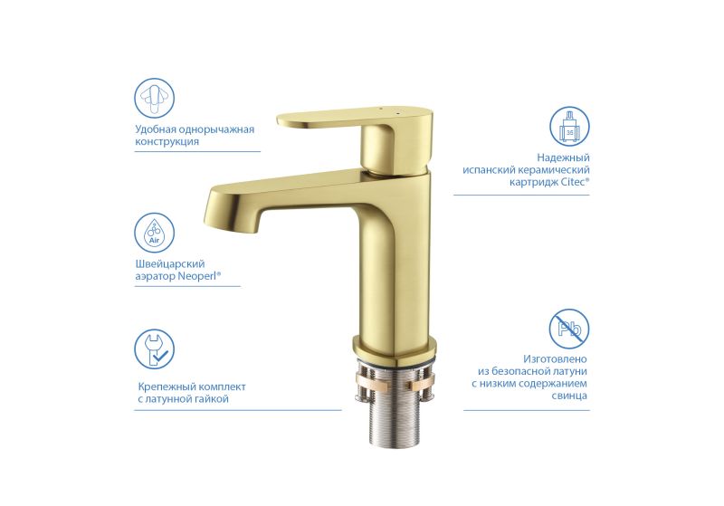 Смеситель для раковины Aquatek Оберон AQ1210BG шлифованное золото купить