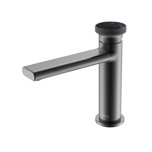Смеситель для раковины датского производителя Black&White в цвете оружейная сталь. Материал корпуса – сантехническая латунь марки HPB 59,безопасный для здоровья и высокоресурсный сплав.Для настройки температуры установлен керамический картридж прогрессивного типа – давление выдается постоянным , а температура выставляется с помощью круглой ручки с насечками расположенной сверху корпуса. В изделии пересекаются цилиндрические и прямоугольные формы, которые гармонично вольются в современные интерьеры ванных комнат.