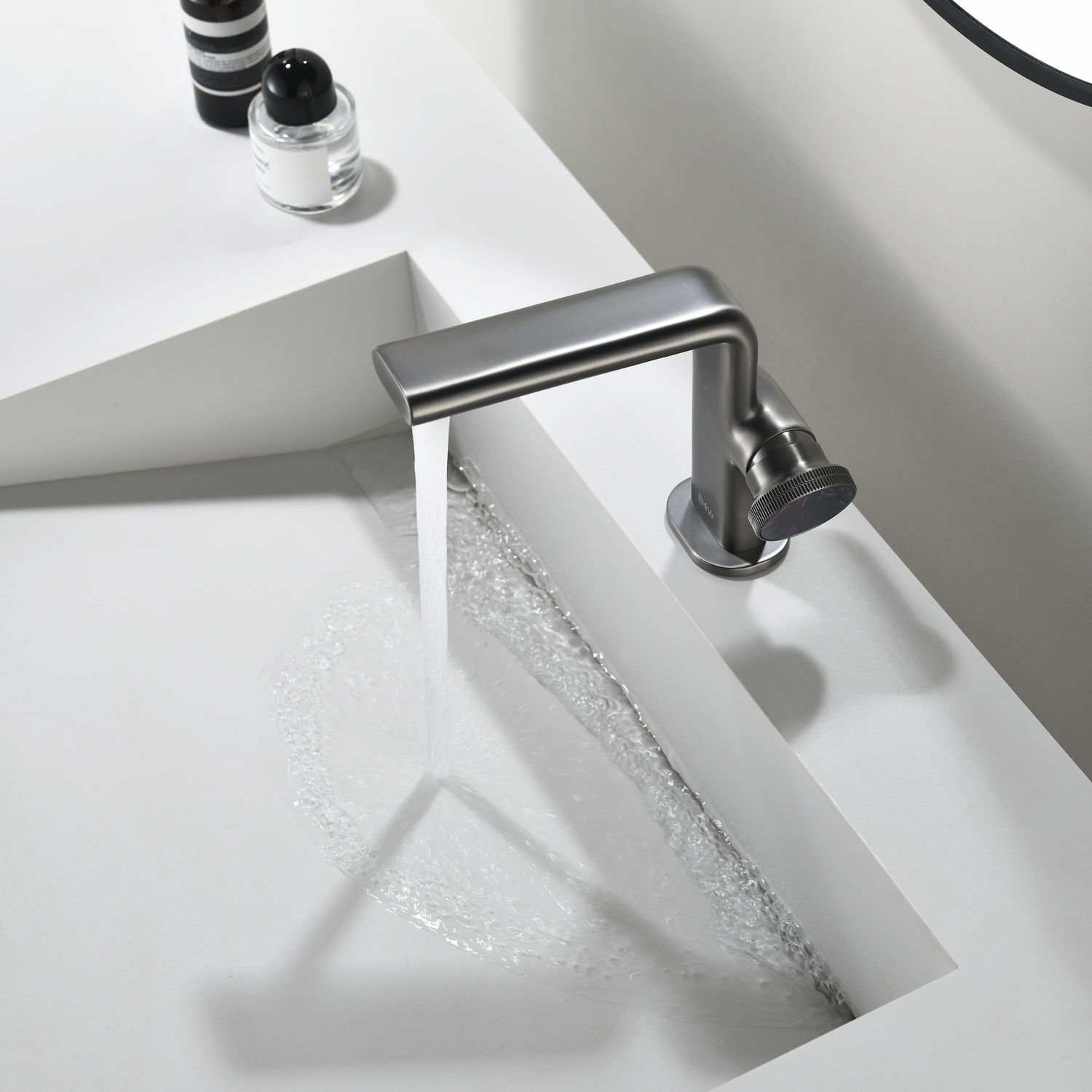 Смеситель для раковины датского производителя Black&White в цвете оружейная сталь. Корпус изготовлен из сантехнической латуни марки HPB 53– безопасного для здоровья сплава из олова цинка и меди. На изделии установлен картридж прогрессивной конфигурации, без возможности регулировки давления в полном диапазоне, доступна регулировка температуры для удобства настройки и экономии воды. Для включения используется ручка в форме диска с насечками и ярким цветовым дополнением.В дизайне продукта используются лаконичные прямоугольные формы со скруглением, которые гармонично дополнят многие современные интерьеры ванных комнат.