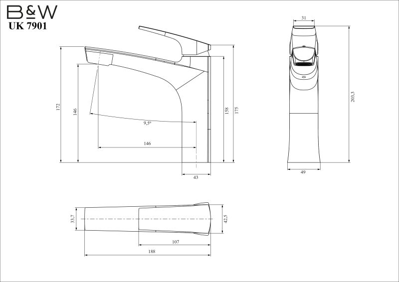 Смеситель для раковины Black&White Universe 7901MG с выдвижным изливом оружейная сталь купить