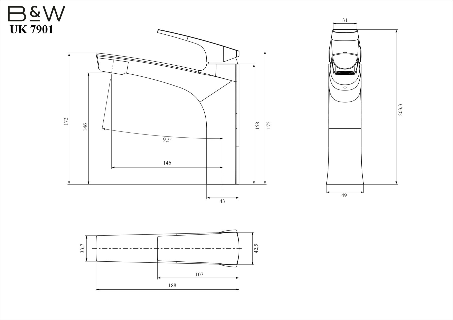 Смеситель для раковины Black&White Universe 7901С с выдвижным изливом хром купить