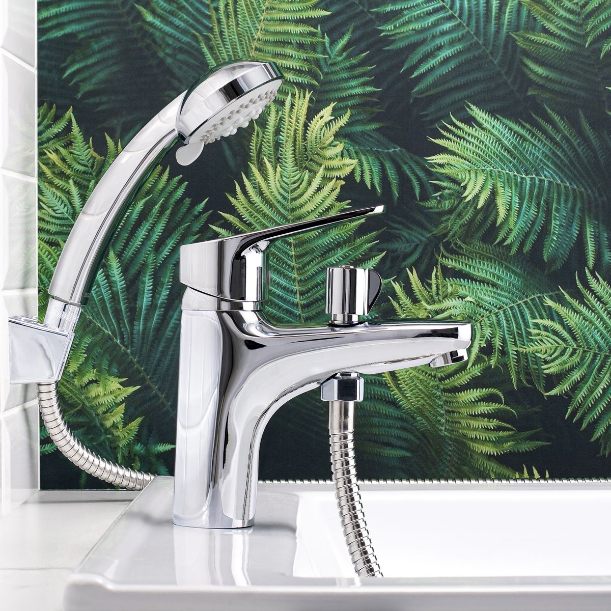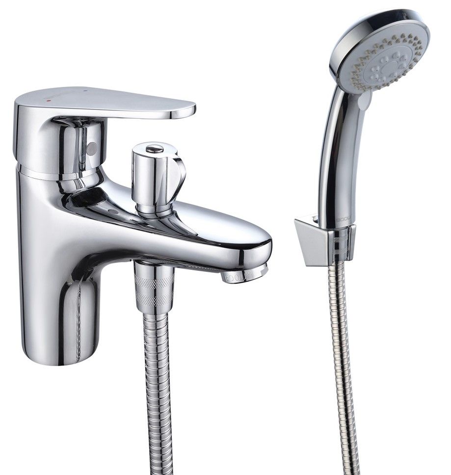 Смеситель Торговой марки BOOU - модель с монолитным изливом устанавливается на борт ванны с помощью присоединительной группы. Комплект дополнен душевым гарнитуром: лейкой и шлангом с настенным креплением. Поворотный дивертор с керамическими пластинами обеспечивает переключение потоков.