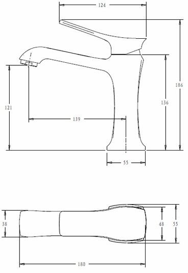 Высота смесителя 186 мм