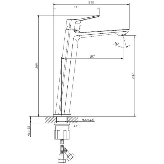 Высота смесителя:30.9