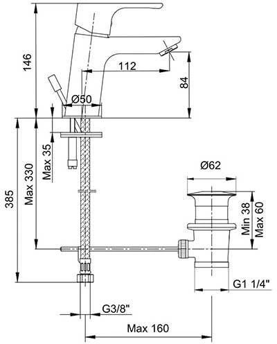 - Стандарт подводки донного клапана: G 1 1/4"