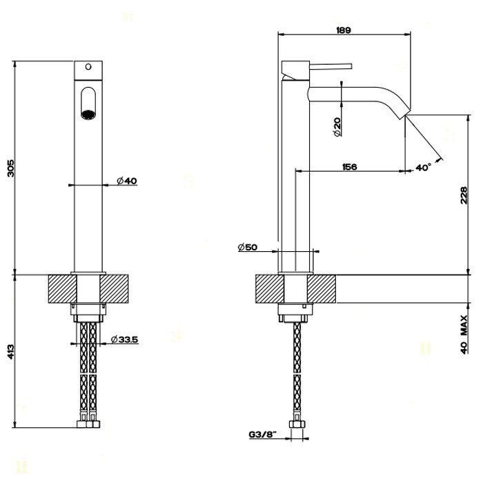 Смеситель имеет общую высоту 305 мм и оснащён удлинённым изливом длиной от 150 мм, что даёт комфортное пространство для использования. В комплекте предусмотрены соединительные шланги, обеспечивающие простоту и надёжность монтажа. Отсутствие донного клапана подчёркивает минимализм и чистоту дизайна, делая модель Gessi 316 идеальным выбором для тех, кто ценит изящную простоту и высокое качество.