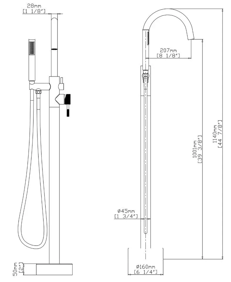 Смеситель для раковины Gid Edessa L070CHSDV, напольный, с душевым гарнитуром, хром