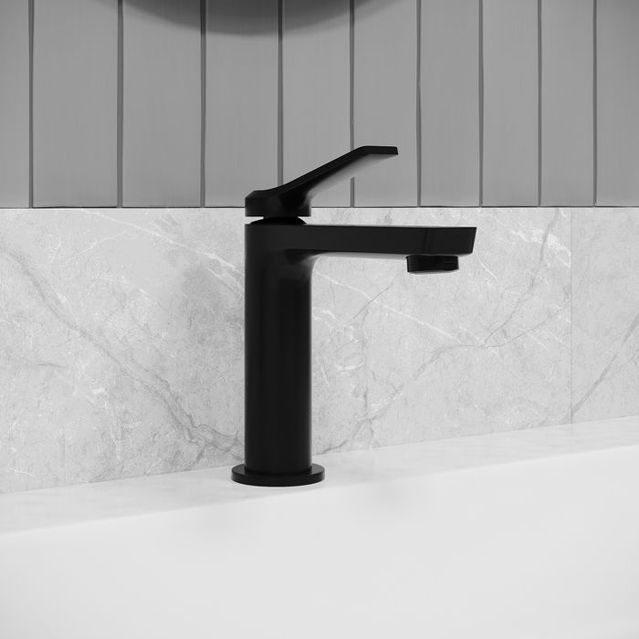 Смеситель Parker в актуальном черном цвете – практичный и стильный, его дизайн сочетает в себе трендовый минимализм форм и четкие грани. Ручка изящно смотрит вверх под углом, освобождая под собой место для более удобного захвата.