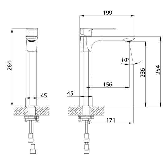Высокий смеситель для настольного умывальника Slide в трендовом черном цвете отлично дополнит настольный умывальник-чашу. Отверстие-петля на ручке выполняет декоративную и при этом практичную роль — ее легко захватить даже намыленной рукой и отрегулировать напор или температуру. Силиконовый аэратор эстетично скрыт в корпусе излива. В комплекте гибкая подводка и комплект крепежа.