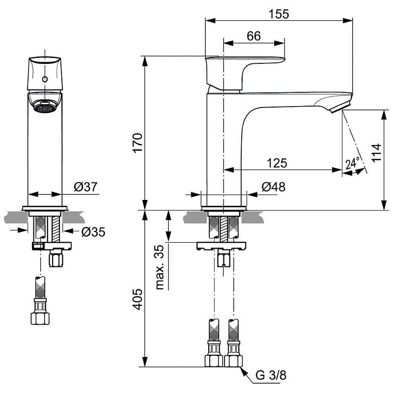 Смеситель для раковины Ideal Standard Connect Air Grande A7015AA.Характеристики:Материал: латунь.