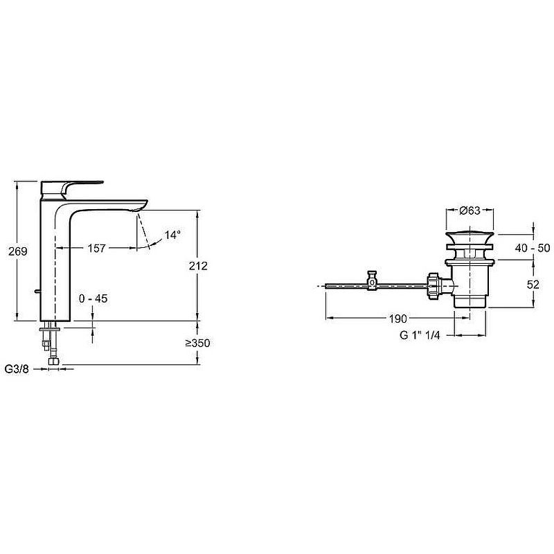 - Удобная высота ножки до аэратора: 176 мм
