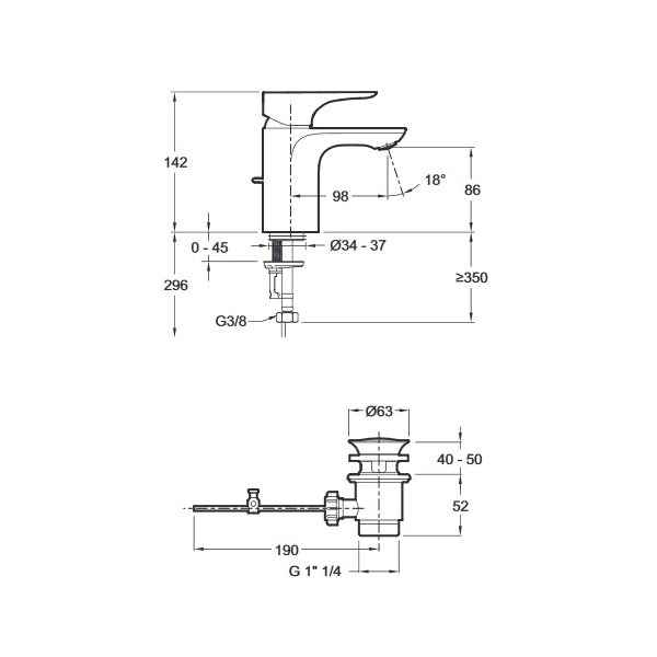 Смеситель для раковины Jacob Delafon Gabin E78126-CPдля раковины (умывальника)