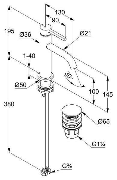 - однорычажный смеситель на умывальник 100 DN 15