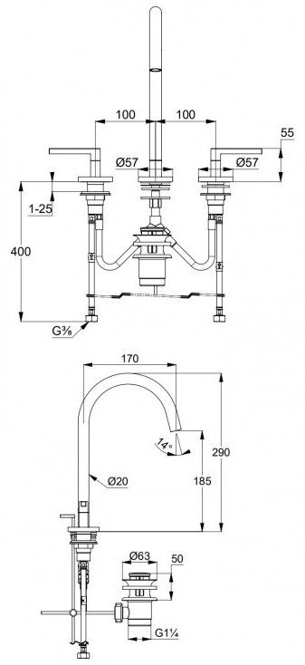 - донный клапан G 1 1/4 из металла