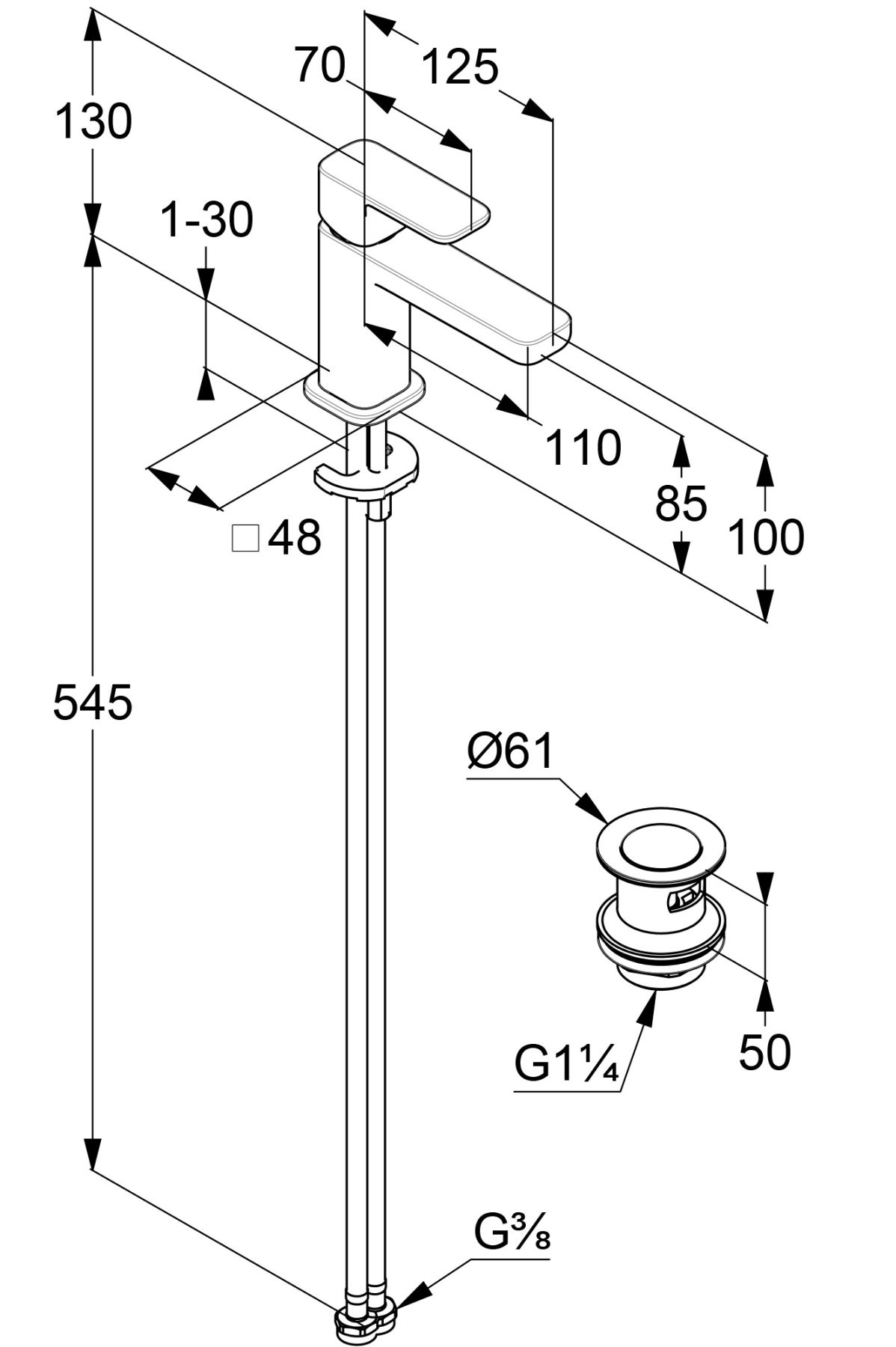 высота излива 85 мм