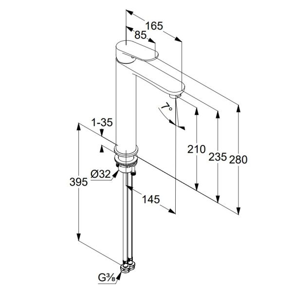 • Высота смесителя: