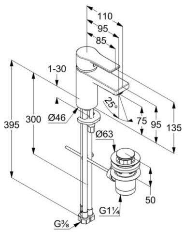 - однорычажный смеситель на умывальник 75 DN 15