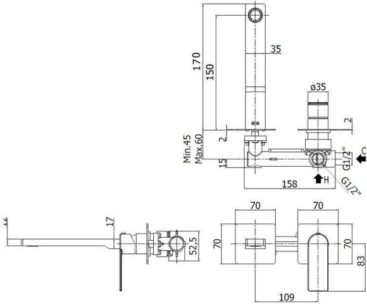 Смеситель для раковины встраиваемый с изливом 150мм с накладками из нерж. Стали 2 шт. 70х70мм, ХромСмеситель для раковины Paffoni Tango TA104CR70 (с внутренней частью) предназначен для раковины. Своим классическим дизайном и колористикой он внесет в интерьер помещения особое настроение, подчеркнув его своеобразие. Он выполнен из надежного материала латунь/Нержавеющая сталь, который не ржавеет, а потому прослужит без ремонтов. Изделие является удачным примером соотношения цена/качество. Управление в смесителе предусмотрено однорычажное, что отвечает пожеланиям любителей такого типа смесителей. Высокую жизнеспособность и долговечность смесителю гарантирует керамический картридж, отличительной чертой которого является проработанная конструкция - залог бесперебойной работы в течение продолжительного времени. Не зря гарантия на смеситель – 5 лет, в течение которого производитель Paffoni заверяет в его бесперебойной работе. Форма излива в смесителе - традиционная, а тип - фиксированный. При покупке учтите, что подводка у смесителя жесткая, что требуется знать для его установки.