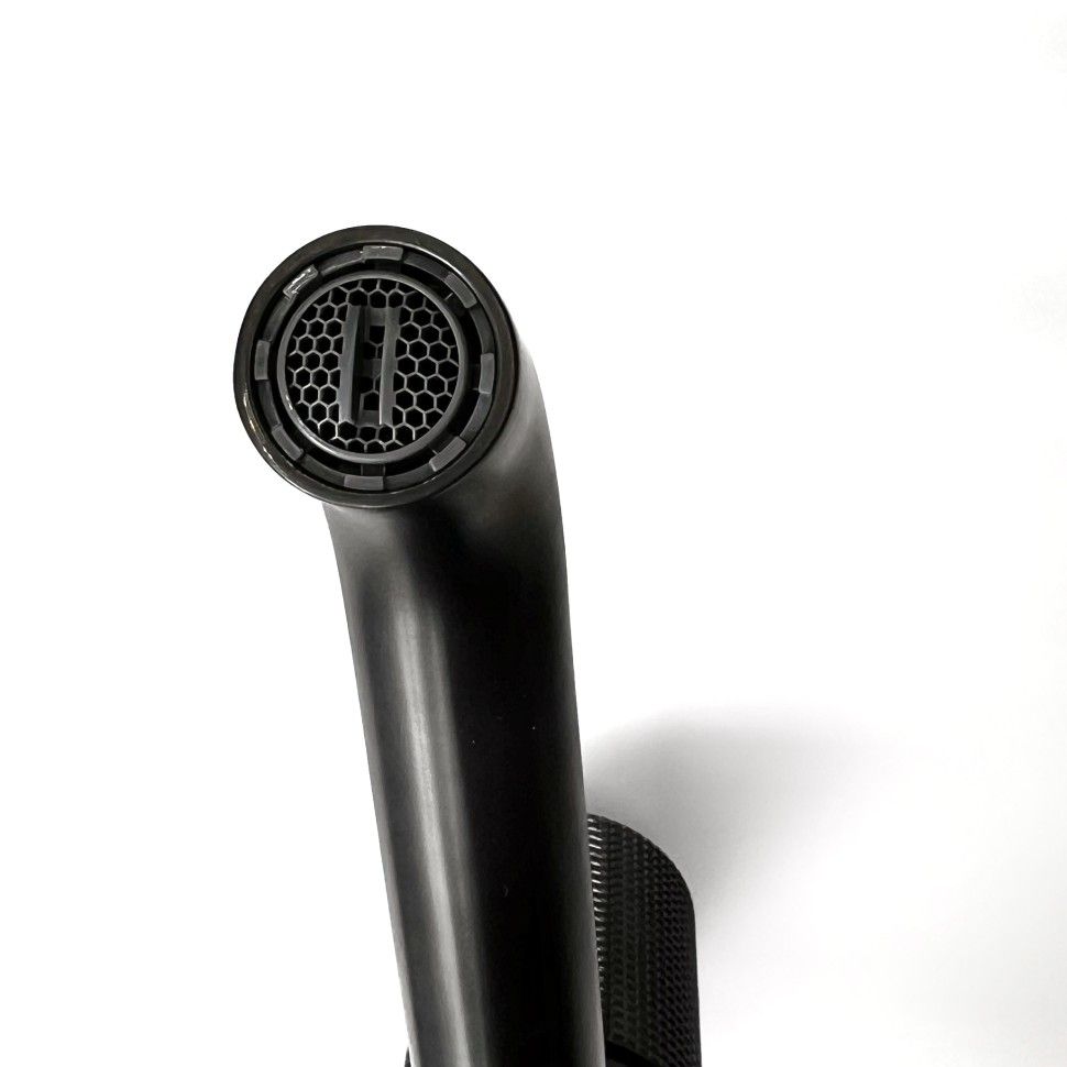 - Сверхпрочное покрытие PVD делает изделие в 10 раз более устойчивым к царапинам и другим повреждениям (для цвета черный матовый PZ и матовое золото PJ). Керамический картридж Nuovo Galatron гарантирует долгую службу и обеспечивает легкую регулировку температуры и напора воды. Аэратор Neoperl насыщает струю кислородом, увеличивает напор, экономя воду. Сеточка легко очищается пальцем.