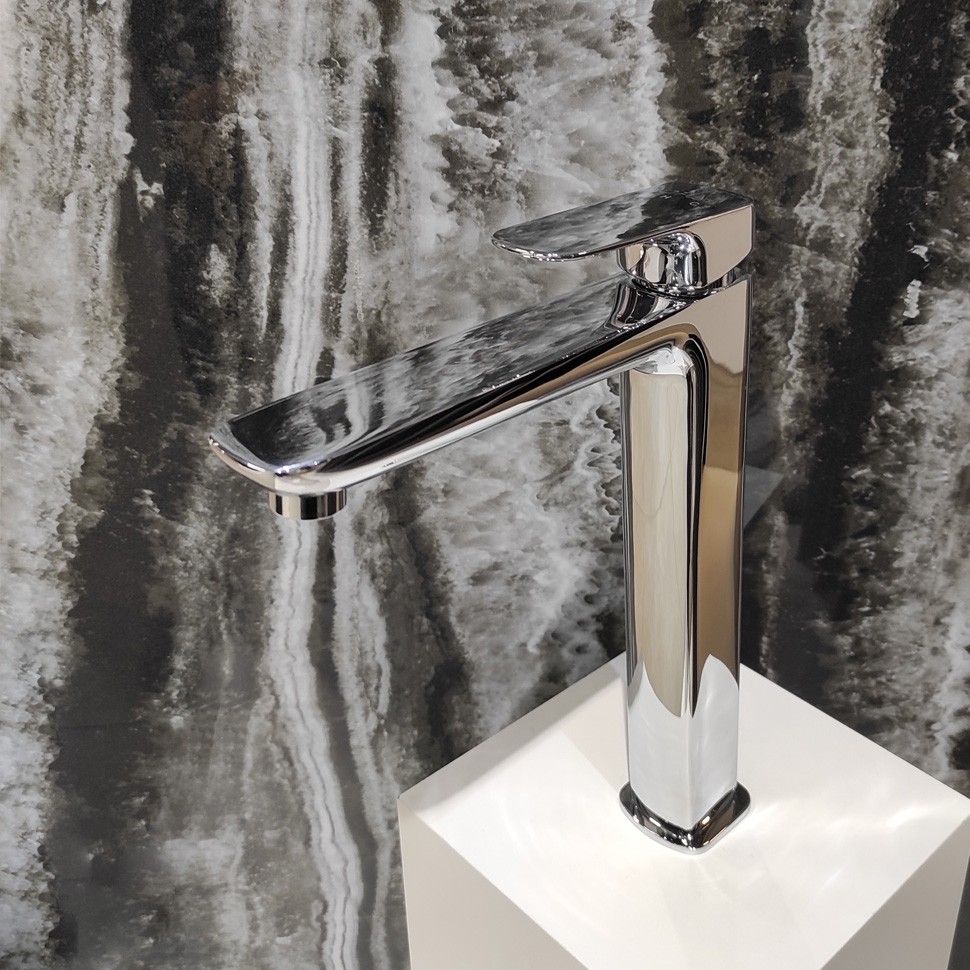Авторская коллекция итальянского дизайнера Mirko Bosio - Nove. Смеситель коллекции Nove выполнен в акцентной геометрической форме, что можно отнести как к нестандартному конструктивному решению, так и к элементу шика. Широкая ручка рычага элегантно сочетается с квадратным корпусом. Дизайн однорычажного высокого смесителя поддержит скандинавский стиль оформления ванной комнаты или любое иное, выбранное вами, направление минимализма. Благодаря высокому корпусу смеситель Nove идеально сочетается с накладными глубокими раковинами-чашами различного размера, а так же подойдет для использования на широких встроенных и подвесных раковинах.