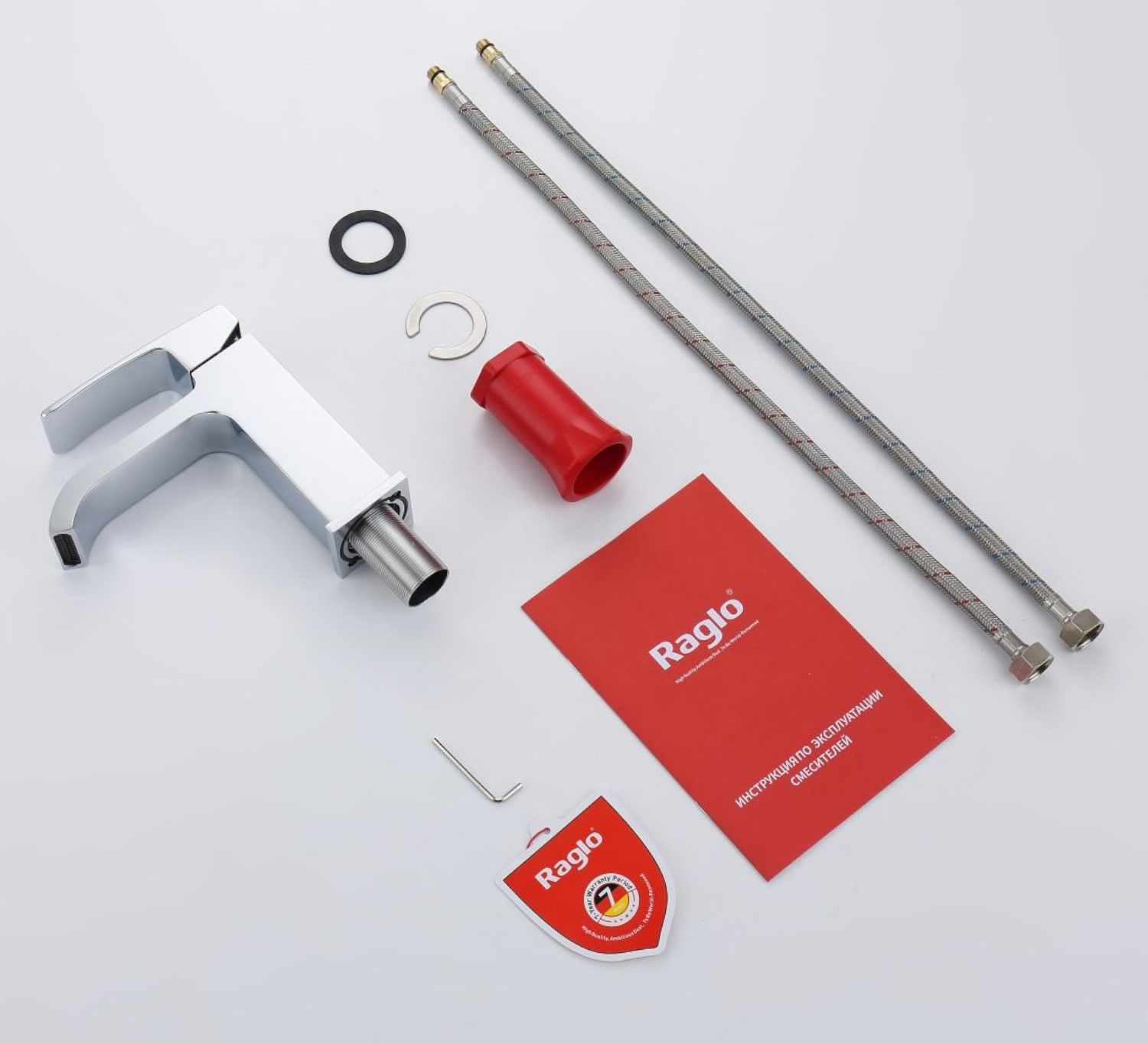 Смеситель для раковины Raglo R02.10, хром. Смеситель для раковины RAGLО имеет повышенную прочность корпуса. Соответствует требованиям международного стандарта. Одна рукоять для регулировки воды. Аэратор гарантирует одинаковый поток воды, сеточка рассеивает напор, вода смягчается. Смеситель устанавливается на гайке, нижняя часть смесителя вставляется в отверстие для монтажа и затягивается гайкой для фиксации. Данный смеситель для умывальника имеет надежный стационарный излив, не меняющий своего положении. Смеситель прекрасно смешивает потоки воды, а помимо этого обладает невысоки показателем шумов. Быстрый монтаж.Гарантия производителя 7 лет.