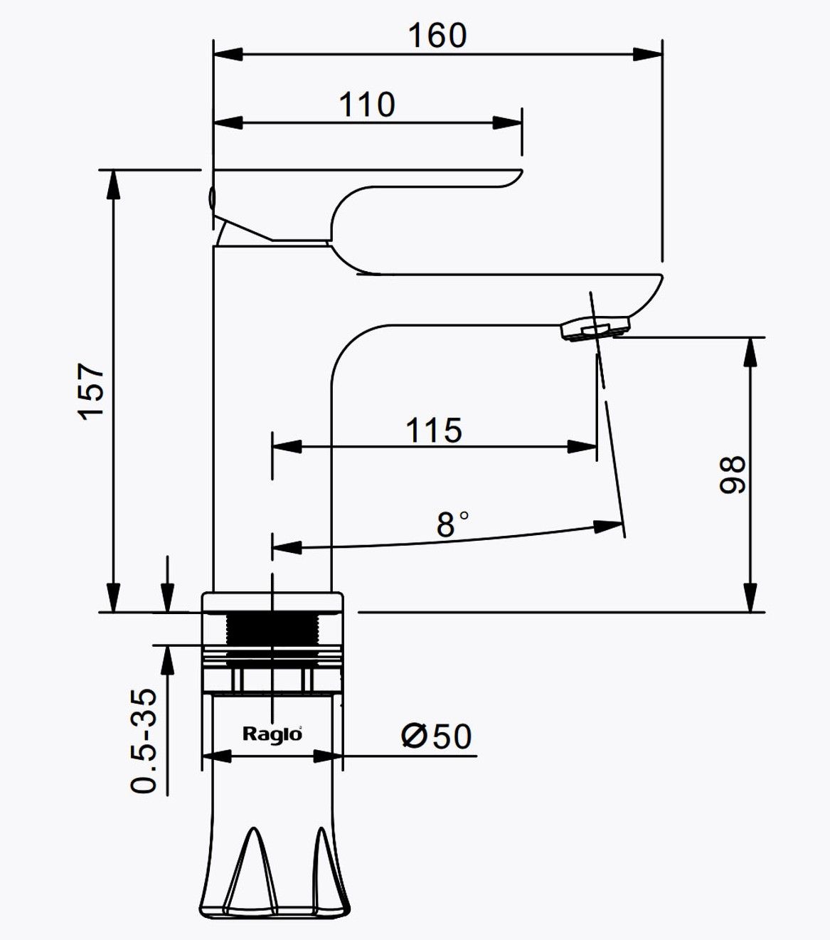 Смеситель для раковины Raglo R03.10.06, черный. Смеситель для раковины RAGLО имеет повышенную прочность корпуса. Соответствует требованиям международного стандарта. Одна рукоять для регулировки воды. Аэратор гарантирует одинаковый поток воды, сеточка рассеивает напор, вода смягчается. Смеситель устанавливается на гайке, нижняя часть смесителя вставляется в отверстие для монтажа и затягивается гайкой для фиксации. Данный смеситель для умывальника имеет надежный стационарный излив, не меняющий своего положении. Смеситель прекрасно смешивает потоки воды, а помимо этого обладает невысоки показателем шумов. Быстрый монтаж.Гарантия производителя 7 лет.