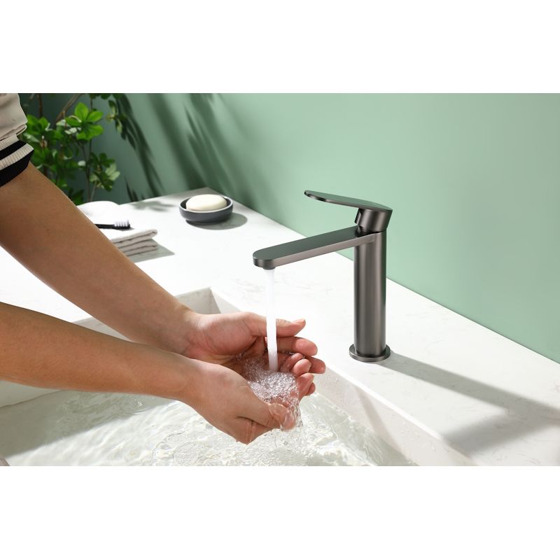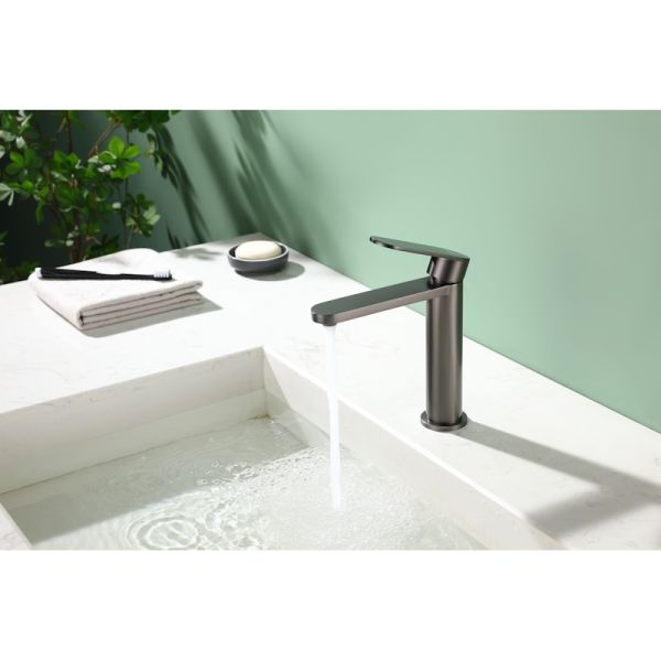 Смеситель для раковины R10.10.09. Однорычажный смеситель для раковины (для умывальника) в ванную, выполненный в цвете "графит". Соответствует требованиям международного стандарта. Одна рукоять для регулировки воды. Аэратор для водопроводной воды Neoperl® гарантирует одинаковый поток воды, сеточка рассеивает напор, вода смягчается. Смеситель устанавливается на гайке, нижняя часть смесителя вставляется в отверстие для монтажа и затягивается гайкой для фиксации. Данный смеситель для умывальника имеет надежный стационарный излив, не меняющий своего положении. Смеситель прекрасно смешивает потоки воды, а помимо этого обладает невысоки показателем шумов. Быстрый монтаж. Гарантия производителя 5 лет.