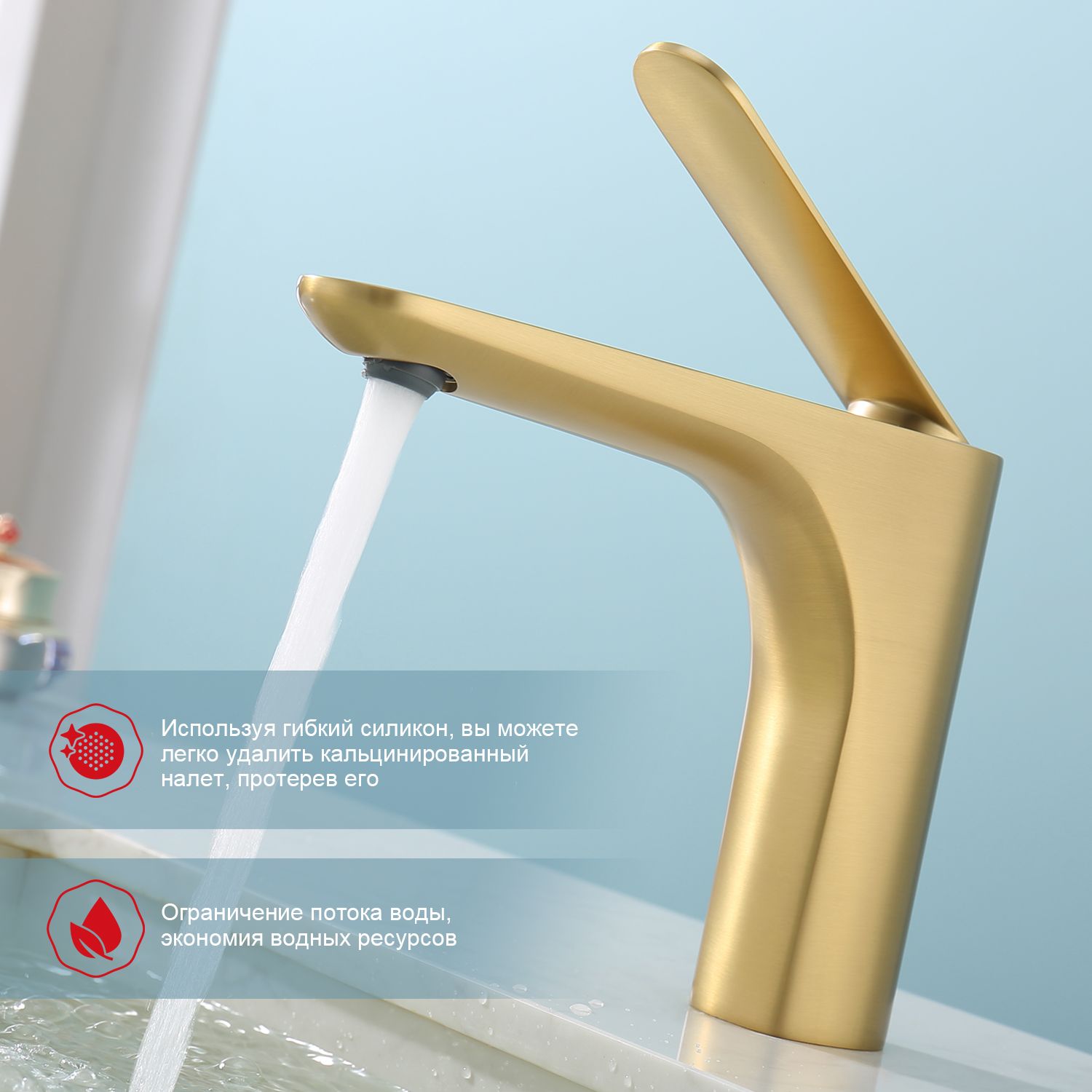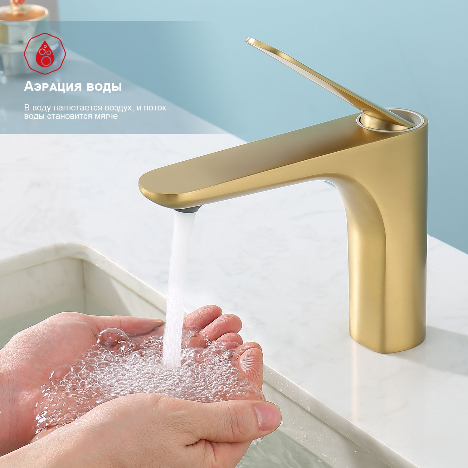 Смеситель для раковины Raglo R21.10.03 золотой сатин купить