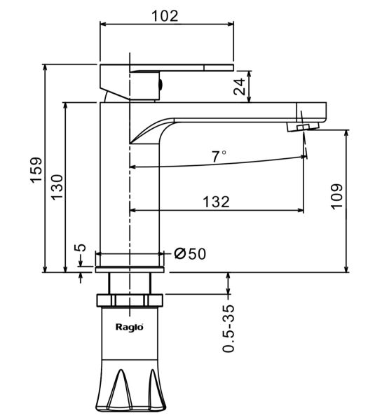Смеситель для раковины RAGLО имеет повышенную прочность корпуса. Соответствует требованиям международного стандарта. Одна рукоять для регулировки воды. Аэратор гарантирует одинаковый поток воды, сеточка рассеивает напор, вода смягчается. Смеситель устанавливается на гайке, нижняя часть смесителя вставляется в отверстие для монтажа и затягивается гайкой для фиксации. Данный смеситель для умывальника имеет надежный стационарный излив, не меняющий своего положении. Смеситель прекрасно смешивает потоки воды, а помимо этого обладает невысоки показателем шумов. Быстрый монтаж. Гарантия производителя 7 лет.