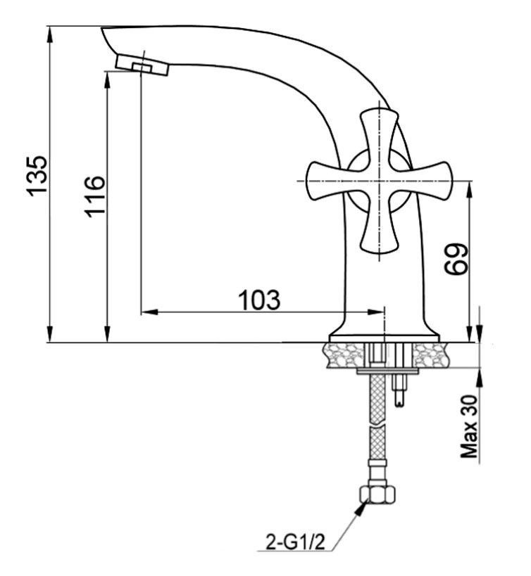 - Стандарт подводки: жесткий 1/2.