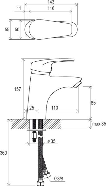 - соединительные шланги: гибкий 350 мм, диаметр G3/8