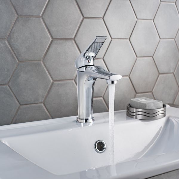 Дизайнерский однорычажный смеситель для умывальника из латуни сочетает в себе стильные формы и стабильную надежность в использовании.