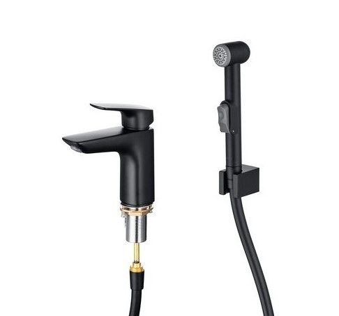 Смеситель для раковины с гигиеническим душем Aquatek Вега AQ1012MB чёрный матовый купить
