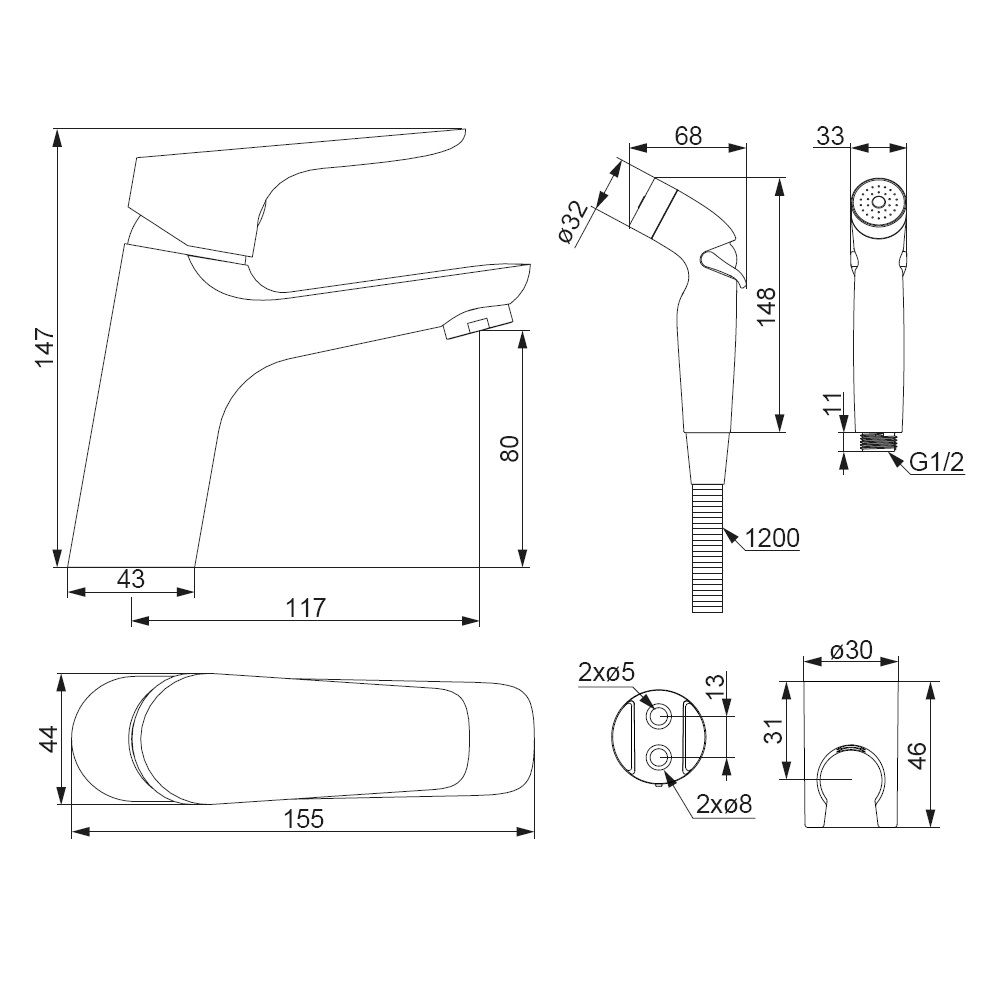 Смеситель для раковины с гигиеническим душем Damixa Jupiter 770300001 хром купить