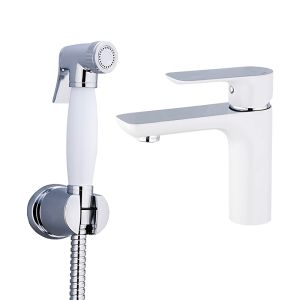 Смеситель для раковины с гигиеническим душем Gappo G1048-1 белый/хром купить