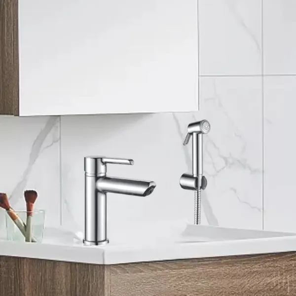 Смеситель для раковины с гигиеническим душем Shevanik S6071 хром купить
