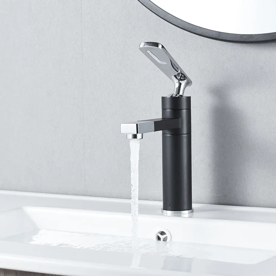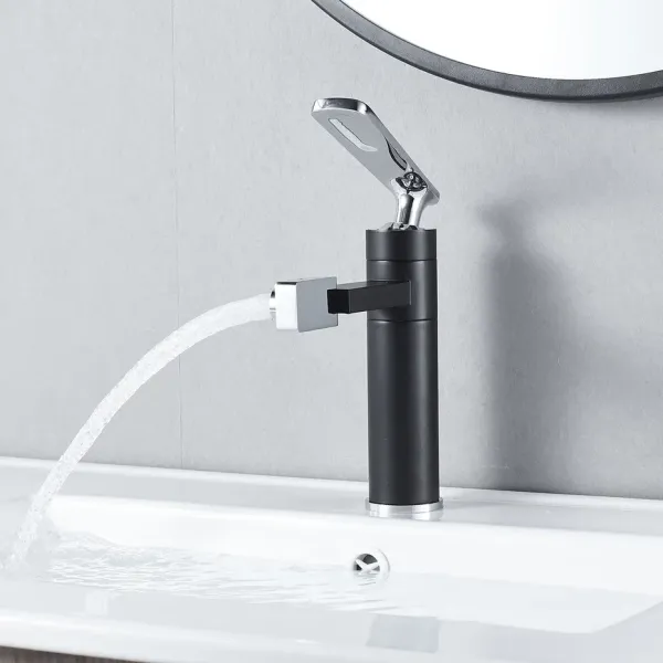 Смеситель для раковины Shevanik S6601H с поворотным носиком чёрный/хром купить