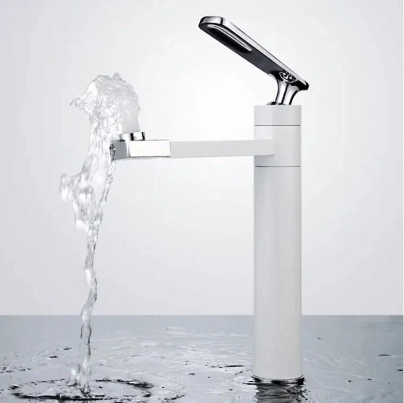 Смеситель для раковины Shevanik S6611F с поворотным носиком белый/хром купить