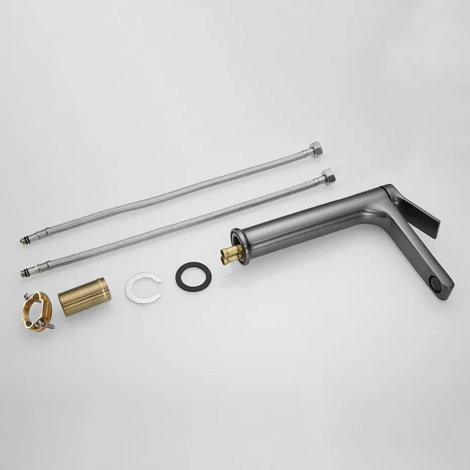 Смеситель для раковины Shevanik S8311T, оружейная сталь.Стилистика дизайна: Современный cтиль.Монтаж: на столешницу.Излив: традиционный, фиксированный.Подводка: гибкая, 1/2" .Материал: латунь.