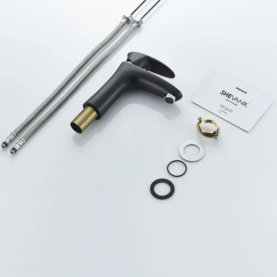 Смеситель для раковины Shevanik S9801H, черный/хром.Стилистика дизайна: Современный cтиль.Монтаж: на раковину.Излив: традиционный, фиксированный.Подводка: гибкая, 1/2" .Материал: латунь.