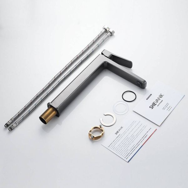 Смеситель для раковины Shevanik S9911T, оружейная сталь.Стилистика дизайна: Современный cтиль.Монтаж: на столешницу.Излив: традиционный, фиксированный.Подводка: гибкая, 1/2" .Материал: латунь.
