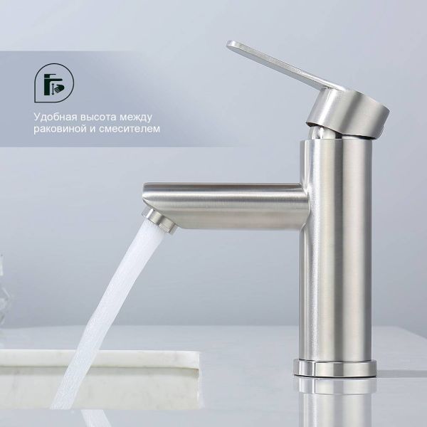 Смеситель для раковины Splenka S223.10.05, сатин. Смеситель для раковины нержавеющая сталь, округлой формы. Смеситель с креплением на гайке. Все для монтажа и эксплуатации есть в комплекте. Гарантия 5 лет.