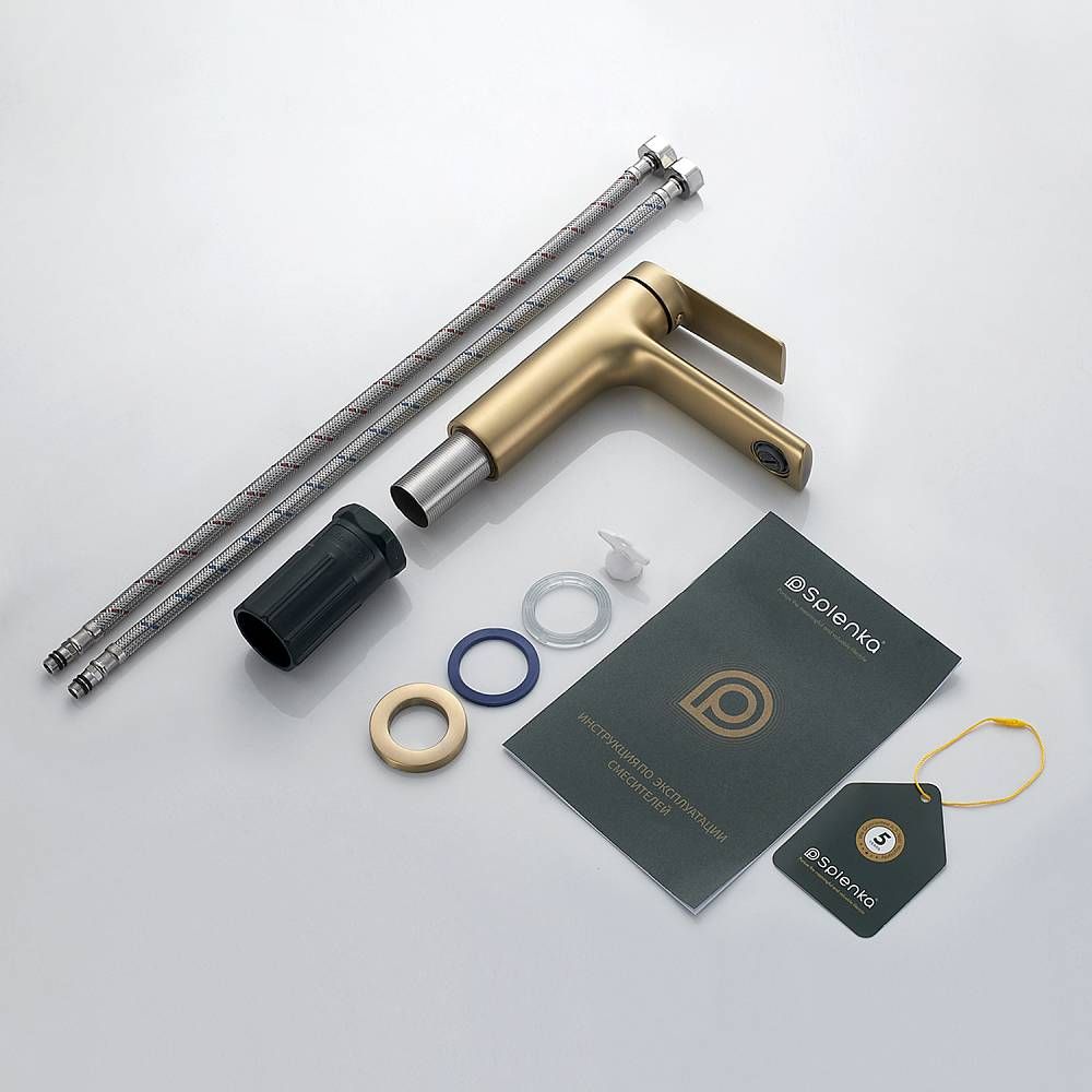 Смеситель для раковины Splenka S50.10.03, сатин золотой. Смеситель для раковины Splenka имеет повышенную прочность корпуса. Соответствует требованиям международного стандарта. Одна рукоять для регулировки воды. Аэратор гарантирует одинаковый поток воды, сеточка рассеивает напор, вода смягчается. Смеситель устанавливается на гайке, нижняя часть смесителя вставляется в отверстие для монтажа и затягивается гайкой для фиксации. Данный смеситель для умывальника имеет надежный стационарный излив, не меняющий своего положении. Смеситель прекрасно смешивает потоки воды, а помимо этого обладает невысоки показателем шумов. Быстрый монтаж. Гарантия производителя 5 лет.
