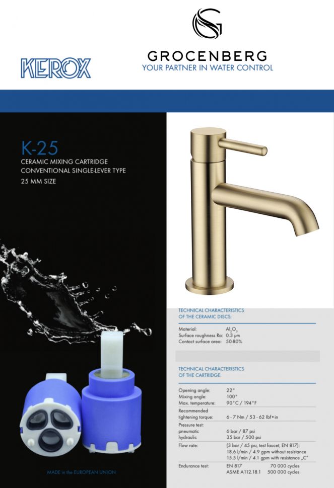 Смеситель для раковины стандартный Grocenberg GB2099MG Матовое золото купить