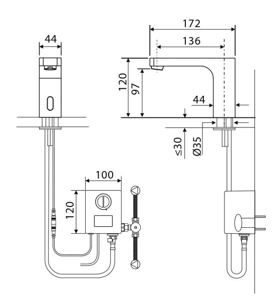 Сенсорный смеситель Timo Torne 4313 предназначен для установки на раковину. Главная особенность сенсорного смесителя - отсутствие механических устройств для включения и отключения воды. Вода начинает течь автоматически, при попадании рук в в зону восприятия сенсорного фотоэлемента. Вода немедленно прекратит течь, когда руки будут выведены из зоны действия датчика, что позволяет экономить расход воды. Статичная конструкция смесителя, не требует ремонта ввиду отсутствия подвижного механизма. Сложностей монтажа не возникает при установке смесителя опытным сантехником. Внимательно изучите инструкцию по монтажу и эксплуатации.