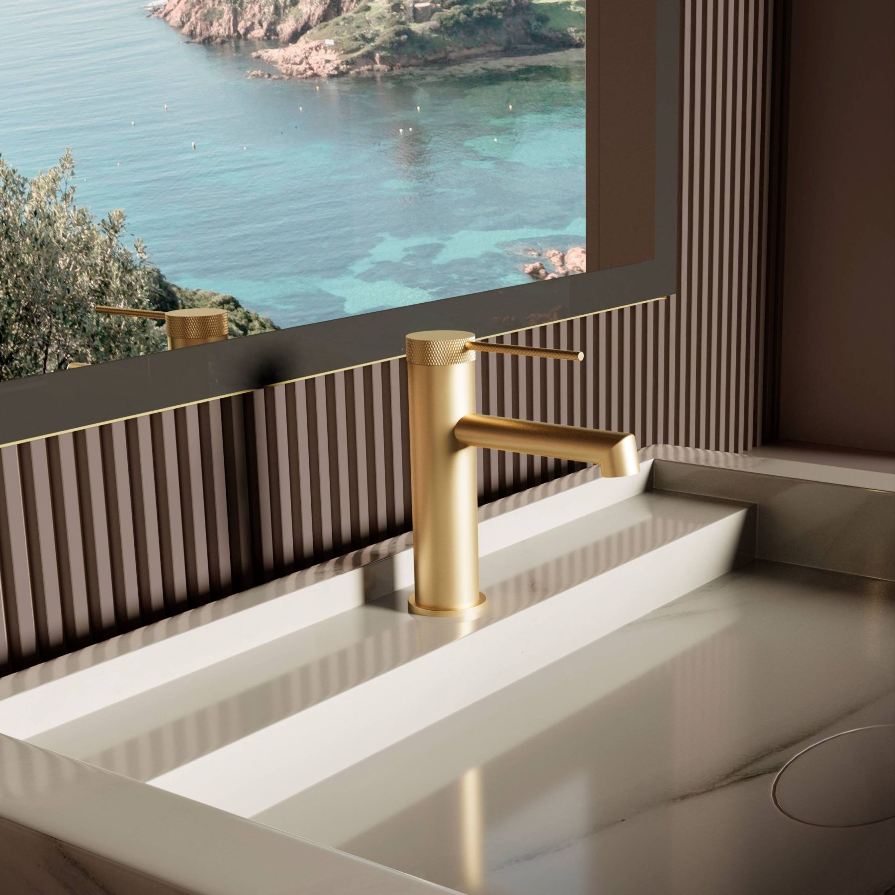 Смеситель для раковины Vincea Rim VBF-2RM1BG, брашированное золото купить