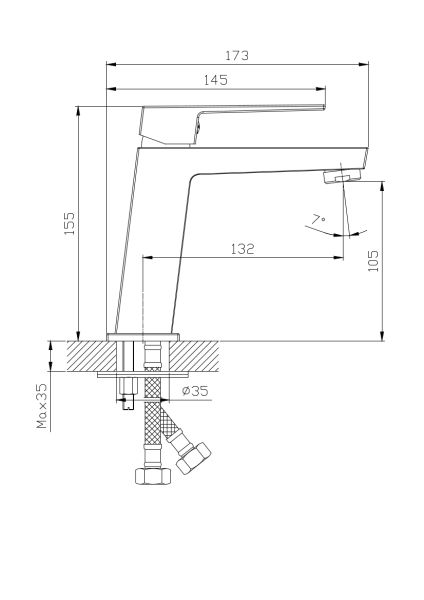Смеситель для раковины RUSH арт. TR3635-12Black с металлической ручкой из коллекции Tira изготовлен из высококачественной латуни и имеет рычажное управление.В смеситель установлен Картридж с керамическими пластинами D-25мм . Высота смесителя 155мм. Излив не поворотный, 132м. Высота излива до аэратора 105мм, аэратор изготовлен из пластика с нержавеющим корпусом, угол наклона -7 гр. Универсальная присоединительная группа для установки на горизонтальную поверхность (шпилька), гибкая подводка с латунными гайками 35см - 2шт, фум-лента, индивидуальный пакет, паспорт, гарантийный талон.