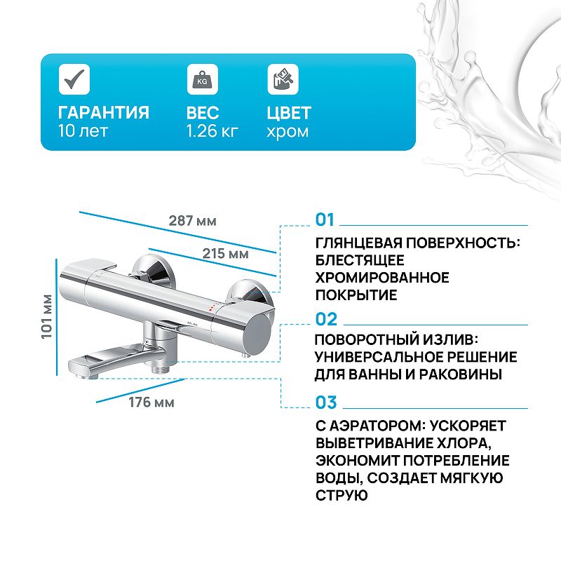 Смеситель для ванны AM.PM X-Joy F85A50000 с термостатом ХромХарактеристики:Цвет: хром.